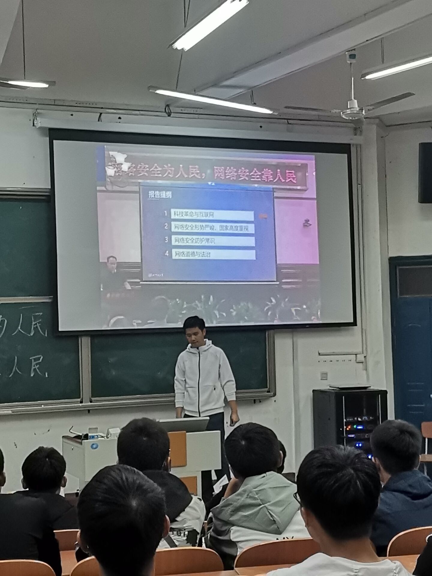 围绕本次国家网络安全宣传周主题,大家一起观看了全省“同上一堂网络安全公开课”---华中科技大学于俊清教授主讲的《互联网时代,网络安全该如何防护?》。班会上,王麒睿老师还向同学们发放了防范电信诈骗纸质宣传册,特别提醒大家要防范网络风险,警惕网络电信诈骗、传销、赌博等不法活动,自觉抵制校园贷。同时,他希望大家文明上网,争做中国好网民,切实增强网络安全意识,提升安全防护技能,共同营造清朗的网络环境,维护国家网络安全。