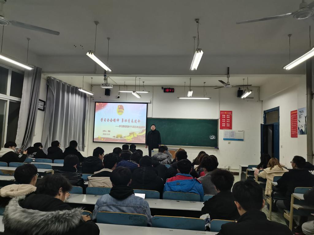 为深入学习贯彻党的十九届五中全会精神,切实把思想和行动统一到全会精神上来,引导广大师生奋力拼搏,为祖国发展贡献青春力量,12月22日晚,beat365亚洲版官网分团委在5306教室,此次团课由分团委书记李路老师担任主讲,分团委学生会全体学生干部,2019级、2020级各班团支书参与主题团课。