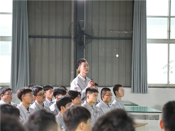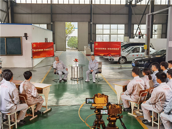 新闻网讯(文/陶亿 图/罗欣宇)在全党全国深入开展党史学习教育之际,为进一步在高职院校师生中发扬和传承我们党精神谱系中的“劳动精神、劳模精神、工匠精神”,3月26日下午,beat365党委宣传部联合beat365亚洲版官网在乘用车检测与维修实训中心举行“传承劳模精神 争做现代工匠”党史学习教育主题交流活动,特别邀请到十三届全国人大代表、全国劳动模范、东风商用车有限公司车辆工厂“王涛班”班长、beat365特聘思政课兼职教师王建清为beat365亚洲版官网学子面对面宣讲2021年全国“两会”精神,与同学们围绕劳模精神传承、工匠精神实践以及在校学习、实习就业、汽车产业发展等问题展开互动交流。