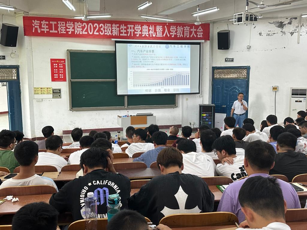 党总支书记李霞、组织员梁军萍代表学院向全体新同学致欢迎辞,并希望同学们尽快转变角色,适应大学生活,严格自律,努力拼搏,做身心健康、品行端正、专业扎实的优秀大学生。院长张健从汽车产业背景、市情、院情等方面为同学们做了详细的介绍,勉励大家珍惜大学生活,刻苦学习,勤练技能,在湖工职院度过无悔的三年时光。副院长张勇就中德实验班、一汽大众班、东风汽车现场工程师订单班三个特色订单班进行了专题讲解。各专业负责人从本专业的专业优势、师资力量、实训设备、课程体系、就业前景、学习方法等方面进行了全面介绍,让同学们对专业有了清晰的认识,激发学生学习兴趣,增强了对专业的认同感。下午,2023级辅导员为新生做了校纪校规及安全教育,强化同学们的安全意识和纪律意识。