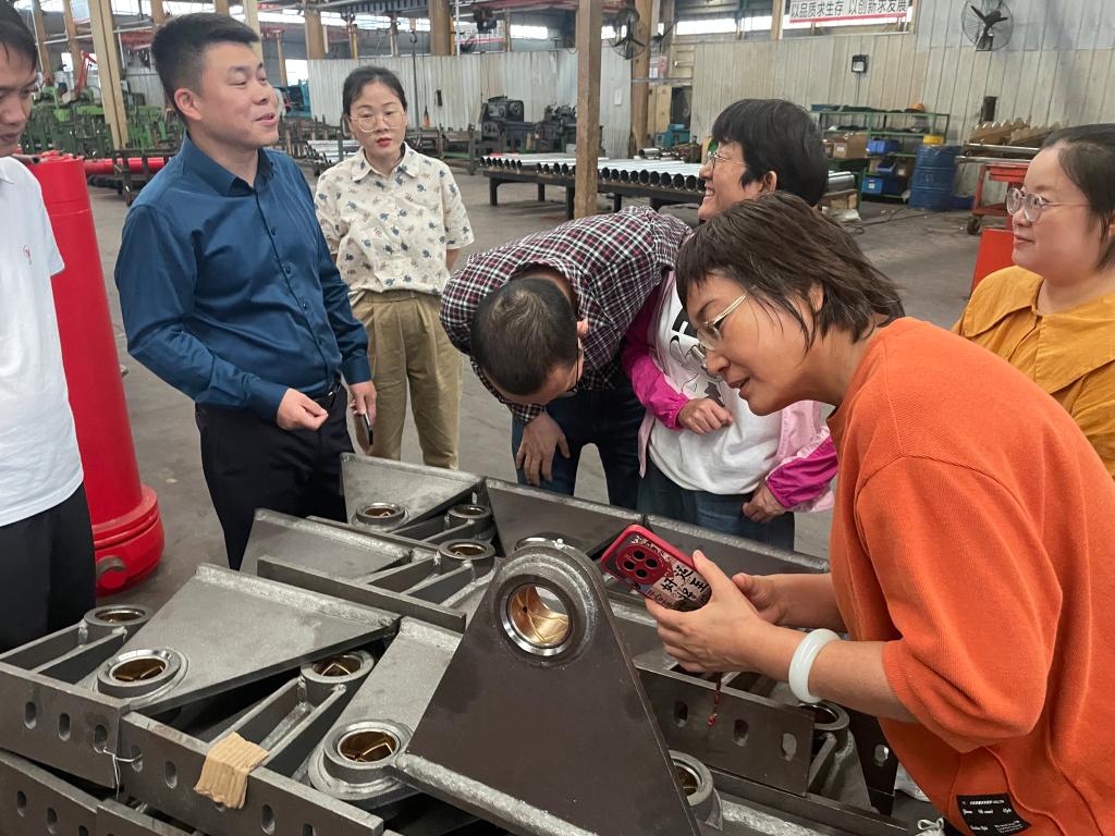 在湖 北万邦液压装备有限公司,beat365教师听取了企业负责人张建亮关于企业生产经营、科技研发、技术难题等情况介绍,参观了生产车间。对于企业提出的产品轻量化、装备自动化、数字化赋能等技术需求,教师团队给予了现场指导,并与公司技术人员进行了深入交流和技术对接,表示将根据企业的需求后续跟进服务,助力企业创新发展和技术进步。交流活动结束时,企业负责人深表满意和感谢,并就后续校企合作达成意向,接下来将邀请学院教师对企业员工开展培训和技术指导。