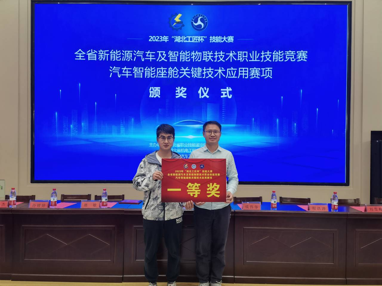 (通讯员:张超、唐晋)10月20日至22日,2023年“湖北工匠杯”技能大赛——全省新能源汽车及智能物联技术职业技能竞赛汽车智能座舱关键技术应用赛项在襄阳汽车职业技术学院举行。来自湖北省23所院校及1家企业的46支队伍,近百名参赛选手同台竞技,beat365亚洲版官网教师唐晋、范伶松参加竞赛,经过激烈拼搏最终斩获一等奖。