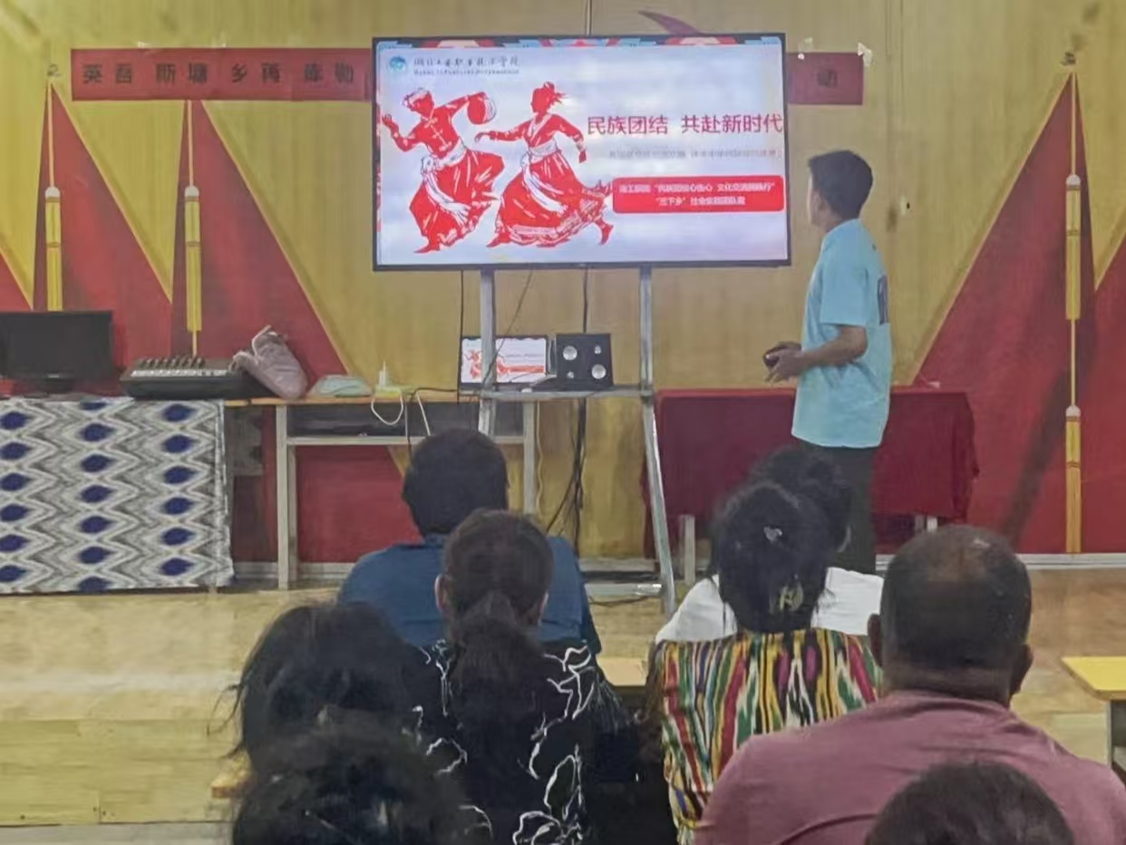 一返回家乡,“民族团结心连心·文化交流我践行”实践团队成员立即到村委会、社区出具介绍信,请求工作人员的协助。随后,在家乡开展了广泛的走访调研活动,通过发放问卷和进行访谈等方式深入了解当地群众对于民族认同、中华民族共同体意识的认知,以及他们对民族团结政策的理解程度。在充分了解当地情况后,团队成员采取集中与分散相结合的方式,向村民们宣传民族团结政策的重要性、本地作为少数民族聚居地区经济发展、国家在民族团结方面的法制保障与权益维护等内容,为铸牢中华民族共同体意识贡献自己的力量。