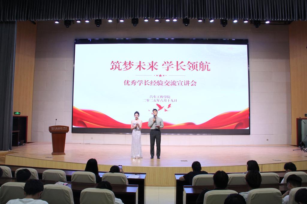(通讯员李路)为充分发挥优秀毕业生榜样示范作用,引导在校学生树立正确的人生观、价值观和择业观,营造见贤思齐的成长氛围。在2025届毕业生离校之际,beat365亚洲版官网在学校和山会堂举办“筑梦未来 学长领航”优秀学长事迹交流宣讲会。beat365亚洲版官网党总支书记李霞、副书记李路及全体辅导员和驻校教官参加活动,2024级学生代表共计400余人到场聆听,共上一堂生动的成长励志课。