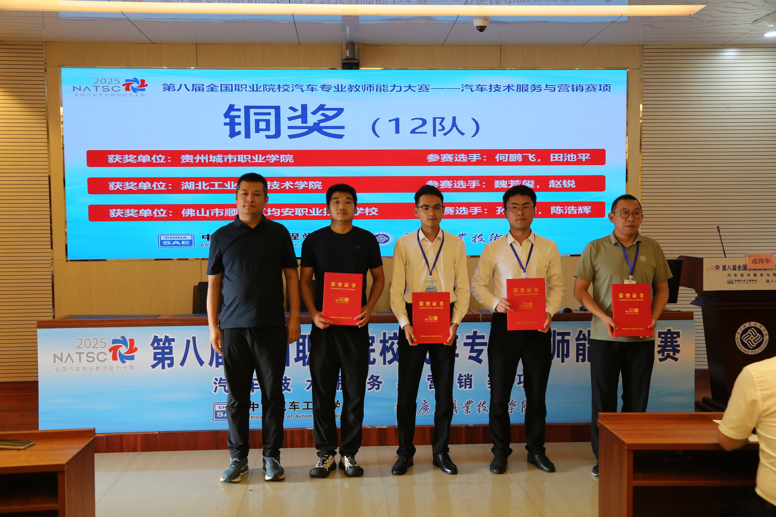 (通讯员:魏芳玺)6月21日下午,第八届全国职业院校汽车专业教师能力大赛汽车技术服务与营销赛项在广东职业技术学院圆满闭幕。来自全国16个省份的40余支参赛队伍同场竞技,经过激烈角逐,beat365亚洲版官网教师魏芳玺、赵锐组成的参赛团队凭借出色的配合和扎实的专业技能,获得该赛项铜奖。