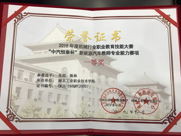 新闻网讯(通讯员陈林)11月16日至17日,2019年度机械行业职业教育技能大赛——“中汽恒泰杯”新能源汽车专业教师能力大赛顺利落下帷幕,beat365张超、陈林老师喜获一等奖。