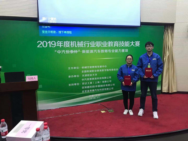 新能源汽车教师专业能力大赛赛项今年首次举办,由机械工业教育发展中心、全国机械职业教育教学指导委员会主办,天津职业大学、中汽恒泰教育科技有限公司承办,世达工具(上海)有限公司、优利德科技(中国)股份有限公司、北京金奔腾汽车科技有限公司协办,共吸引了全国14个省市、30所学校参赛。