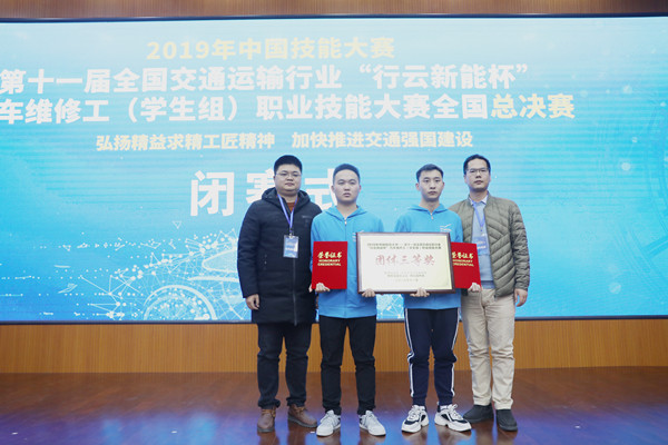 新闻网讯(通讯员陈高峰 江鹏飞)11月19日21日,第十一届全国交通运输行业“行云新能杯”汽车维修工(学生组)职业技能大赛全国总决赛在天津交通职业学院举行,beat365beat365亚洲版官网2017级新能源汽车技术专业参赛学生团队张鑫、方元彬荣获三等奖。